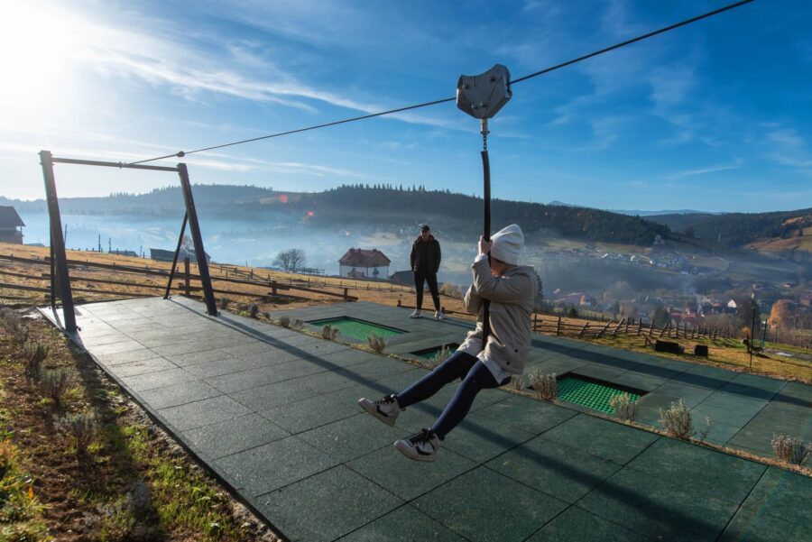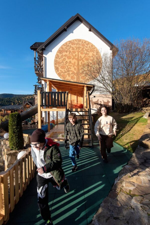 Тут дітки можуть весело відпочити на батуті, виказуючи свою кмітливість та енергію, а також випробувати справжню тарзанку, перетинаючи повітря на гойдалці.